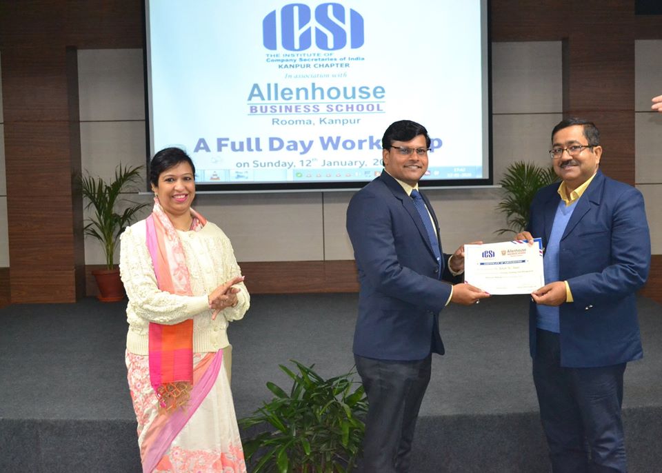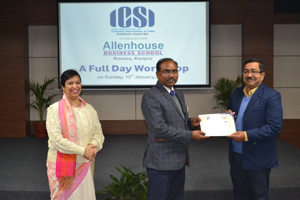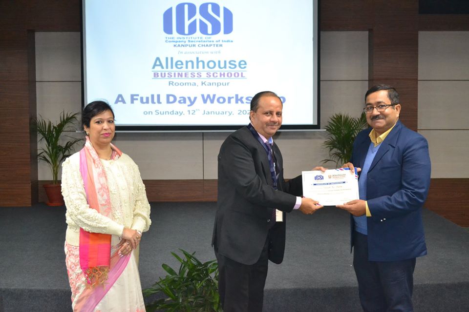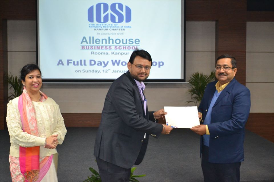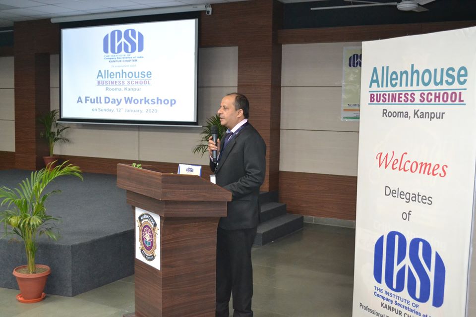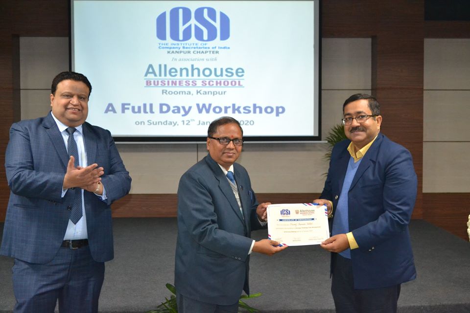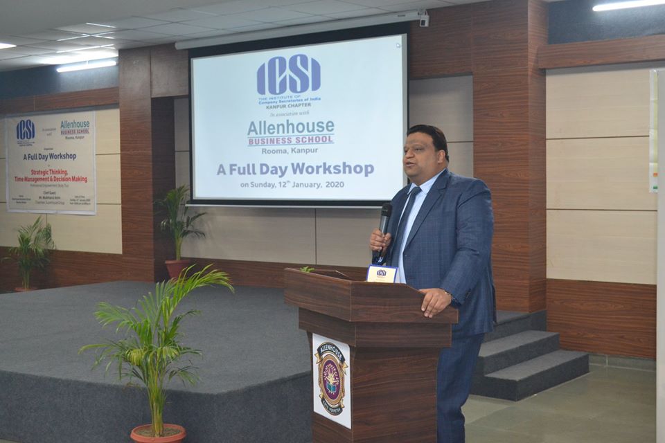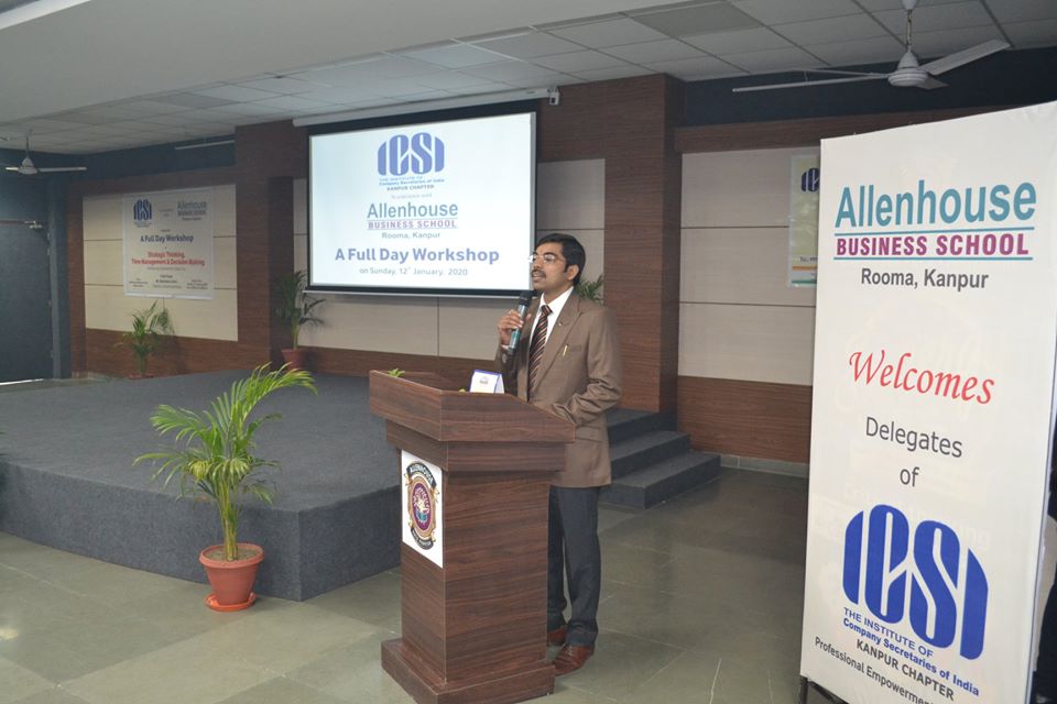 The Kanpur Chapter of the ICSI in association with Allenhouse Business School, Kanpur organized a one day workshop on ‘Strategic Thinking, Time Management & Decision Making’ for the Company Secretaries of Kanpur. The Chief Guest Mr. Mukhtarul Amin, Chairman, Superhouse Group, Guest of honour Mr. Zafar Amin, Joint Managing Director, Superhouse Group, and Mr. Javed Hashmi, Joint Secretary, Superhouse Education Foundation, graced the occasion by their presence along with the Chairman and other office-bearers of Kanpur chapter. The Resource persons for the workshop were Dr. Bhagwan Jagwani, Director-Allenhouse Colleges, and Dr. Kirti Malhotra, Director (Admin & CRC), Allenhouse Colleges.