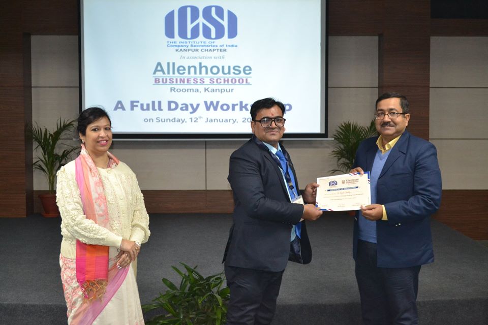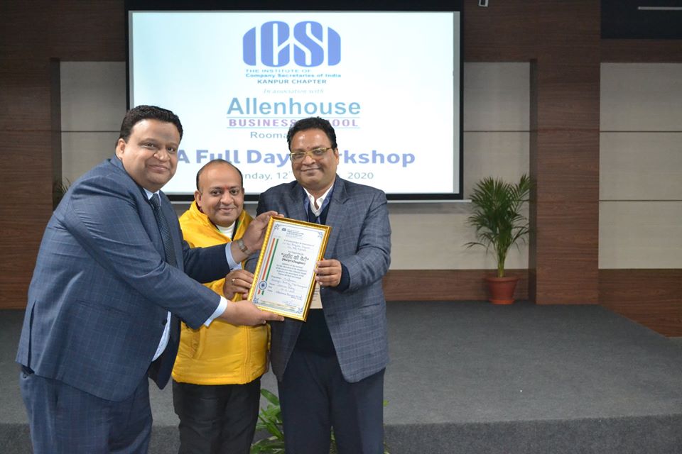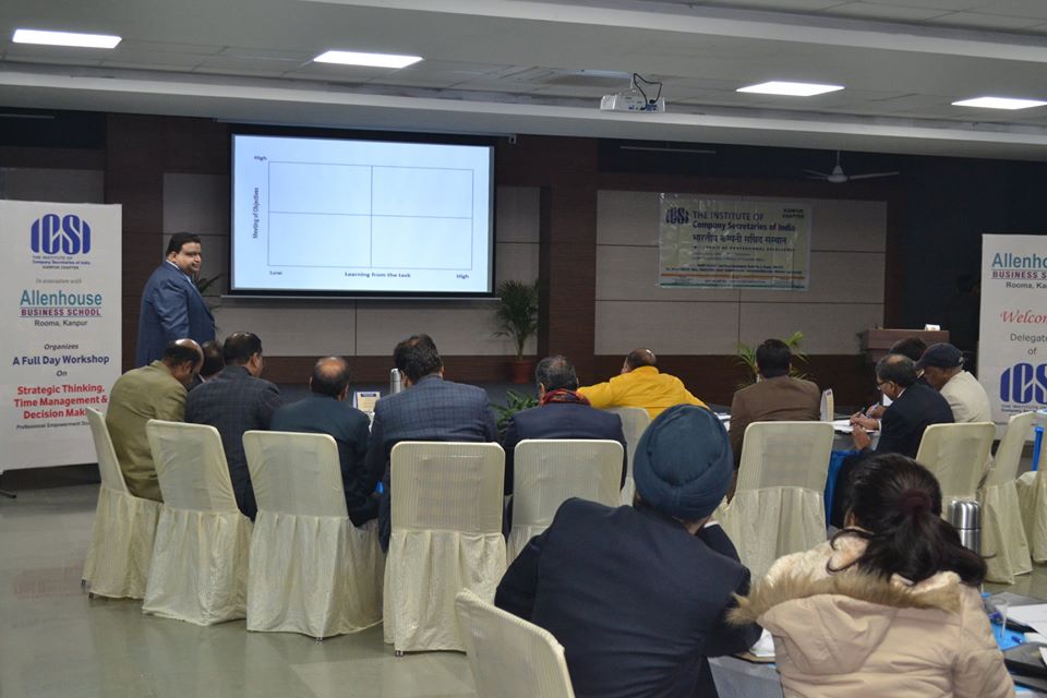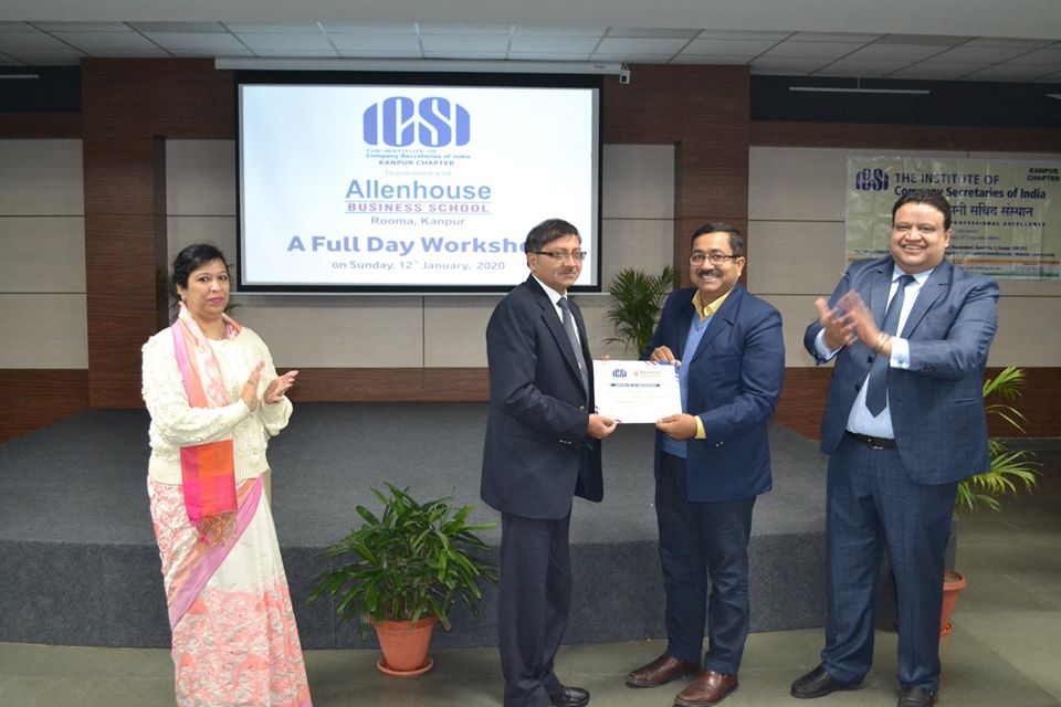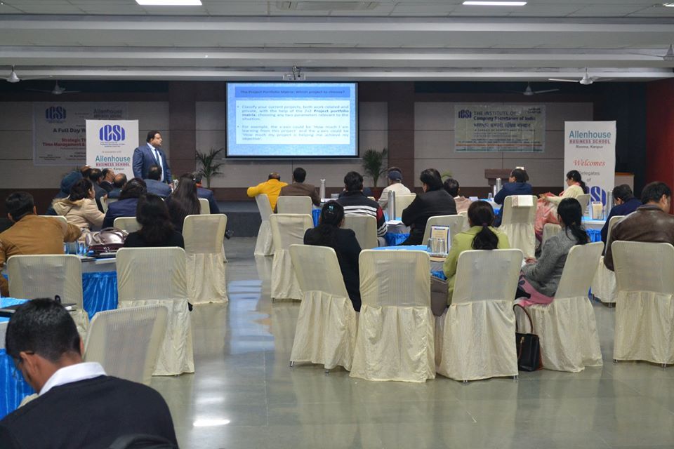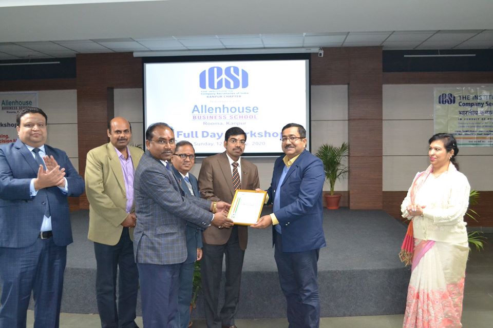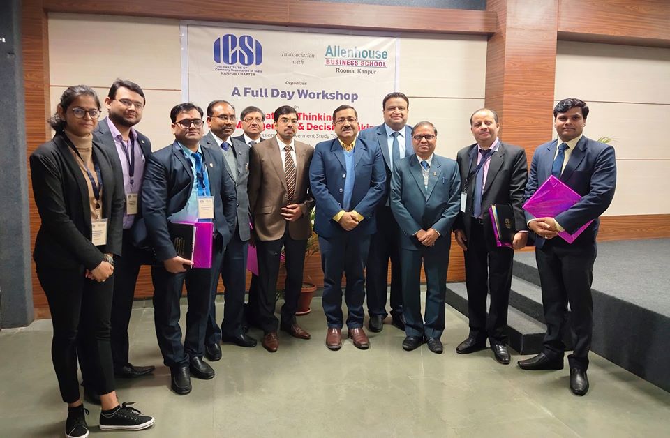 The Kanpur Chapter of the ICSI in association with Allenhouse Business School, Kanpur organized a one day workshop on ‘Strategic Thinking, Time Management & Decision Making’ for the Company Secretaries of Kanpur. The Chief Guest Mr. Mukhtarul Amin, Chairman, Superhouse Group, Guest of honour Mr. Zafar Amin, Joint Managing Director, Superhouse Group, and Mr. Javed Hashmi, Joint Secretary, Superhouse Education Foundation, graced the occasion by their presence along with the Chairman and other office-bearers of Kanpur chapter. The Resource persons for the workshop were Dr. Bhagwan Jagwani, Director-Allenhouse Colleges, and Dr. Kirti Malhotra, Director (Admin & CRC), Allenhouse Colleges.