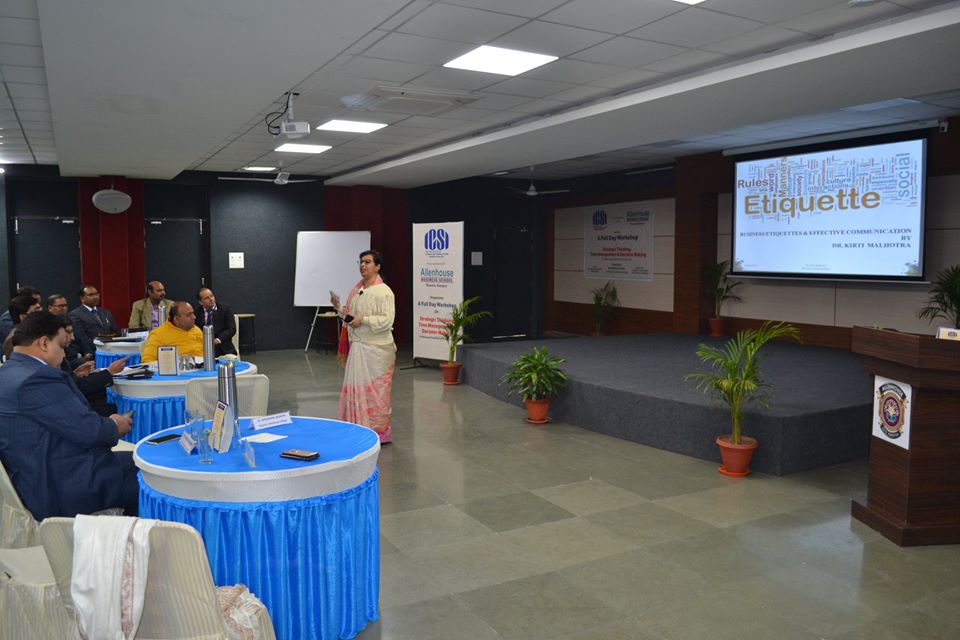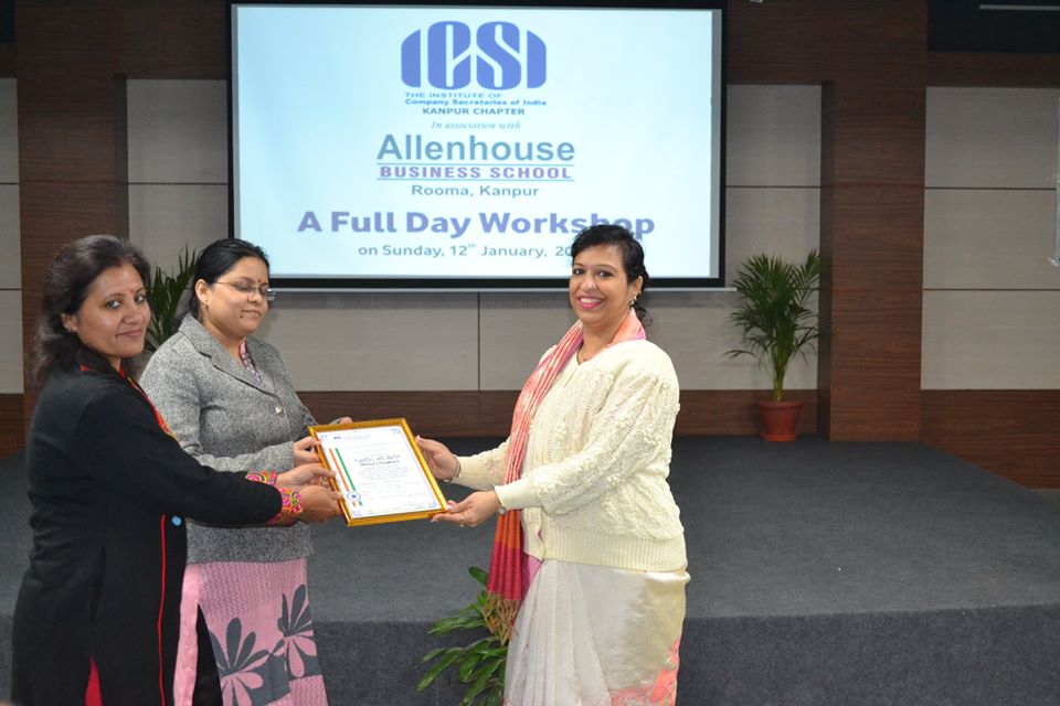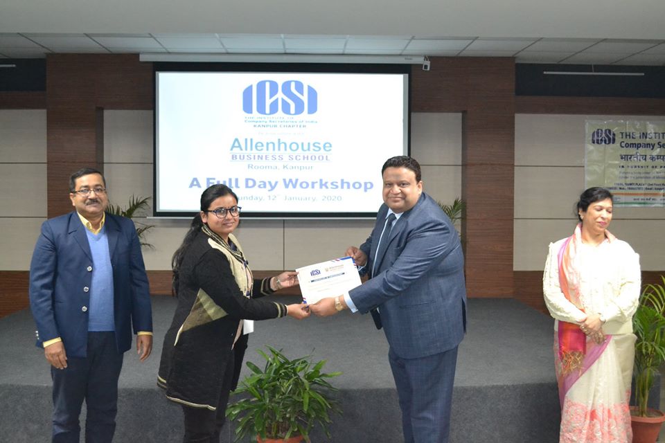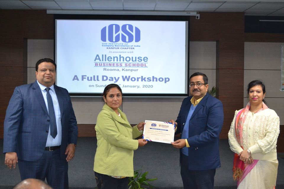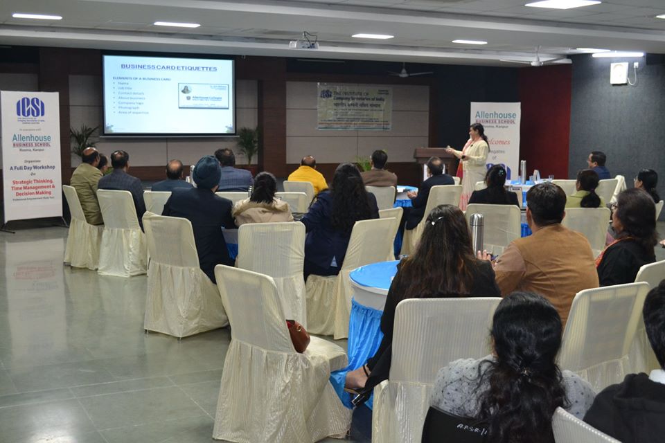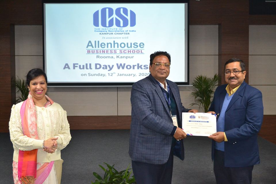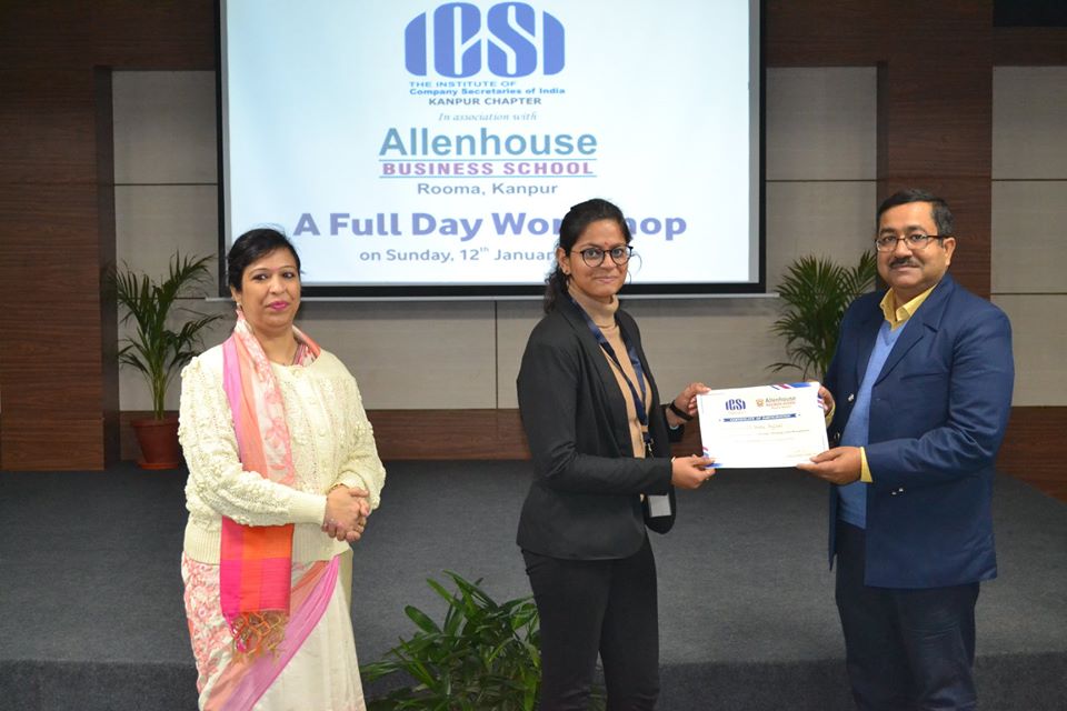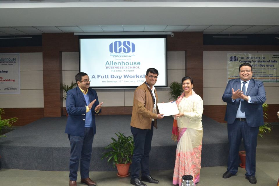 The Kanpur Chapter of the ICSI in association with Allenhouse Business School, Kanpur organized a one day workshop on ‘Strategic Thinking, Time Management & Decision Making’ for the Company Secretaries of Kanpur. The Chief Guest Mr. Mukhtarul Amin, Chairman, Superhouse Group, Guest of honour Mr. Zafar Amin, Joint Managing Director, Superhouse Group, and Mr. Javed Hashmi, Joint Secretary, Superhouse Education Foundation, graced the occasion by their presence along with the Chairman and other office-bearers of Kanpur chapter. The Resource persons for the workshop were Dr. Bhagwan Jagwani, Director-Allenhouse Colleges, and Dr. Kirti Malhotra, Director (Admin & CRC), Allenhouse Colleges.