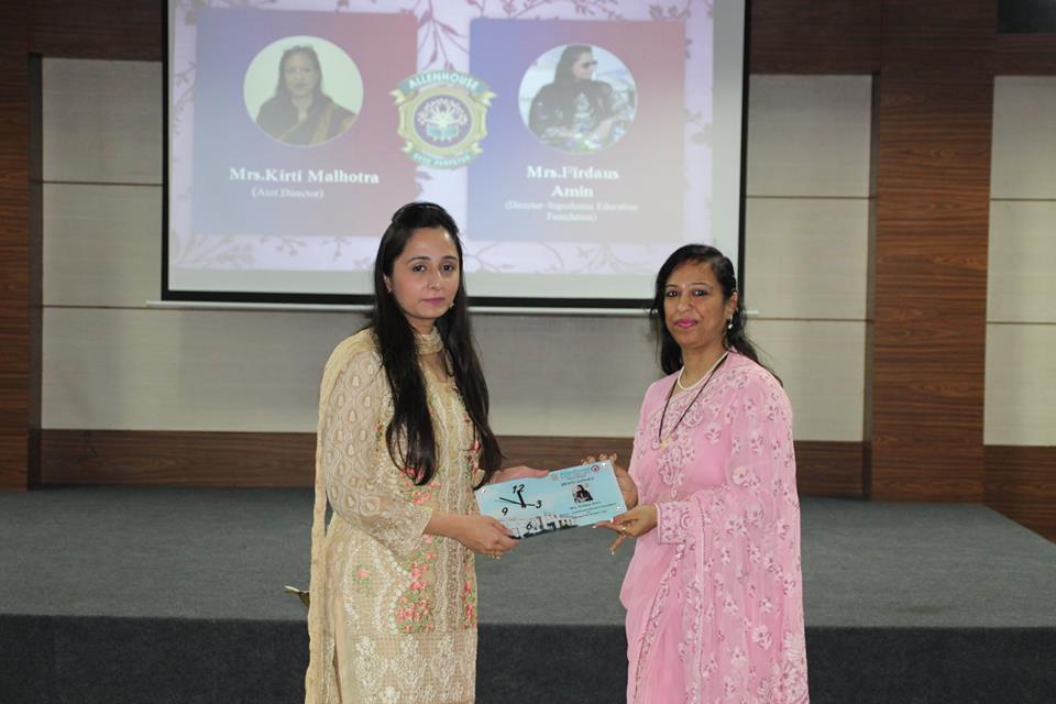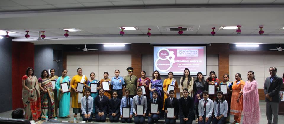 Nothing makes a woman more powerful than the belief that she is powerful. Allenhouse on international women’s day celebrated women power with the national responsibility. The Chief Guests for the event were Flight Lieutenant Sukrit R. P. Singh, Joint Secretary- AFWWA and Major Indu Mishra, NCC City Coordinator. The event also had an interactive session on female health and nutrition by a Sr. Nutritionist and Fitness Consultant, Dr. Shipra Mathur. The mothers of the meritorious students were honoured and encouraged by the Director- Superhouse Education Foundation, Mrs Firdaus Amin.