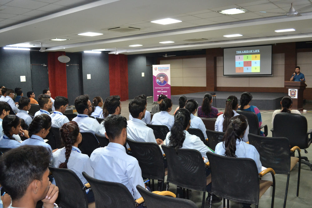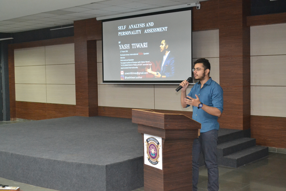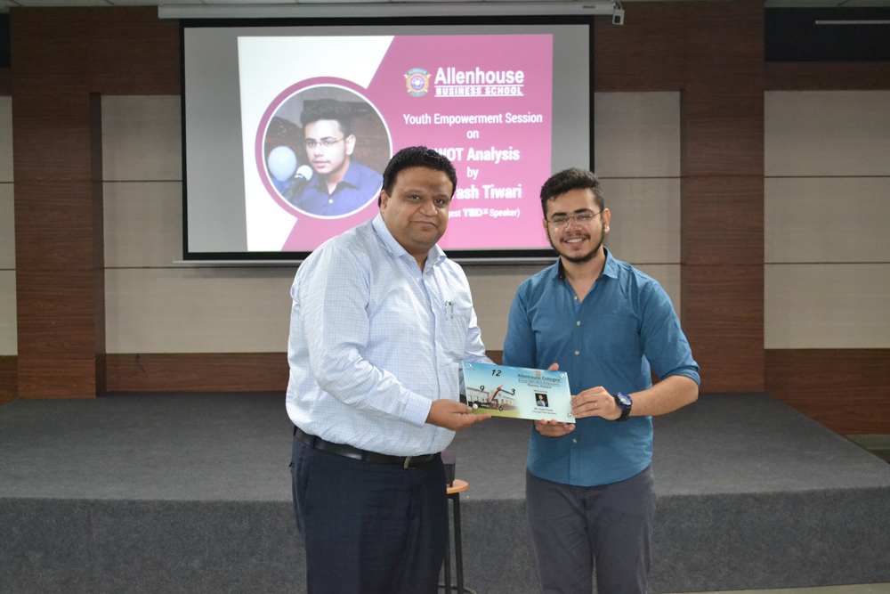 Allenhouse Business School organized a Youth Empowerment Session on ‘SWOT ANALYSIS’ by Mr. Yash Tiwari, the Youngest TEDx speaker, Kanpur, and also a recipient of Bal Ratan Samman. He guided students on how to analyze, identify and build upon their strengths, discover new opportunities and work for eliminating or minimizing threats. He told students the essence of ‘Life Grid’ and how to maintain the right balance between being a ‘Thinker’ and a ‘Doer’. Mr. Yash was accompanied by Ms. Anmol Tiwari, CSJM University GOLD and BRONZE Medalist. Students participated actively during the Question & Answer session.